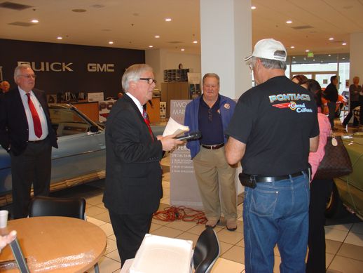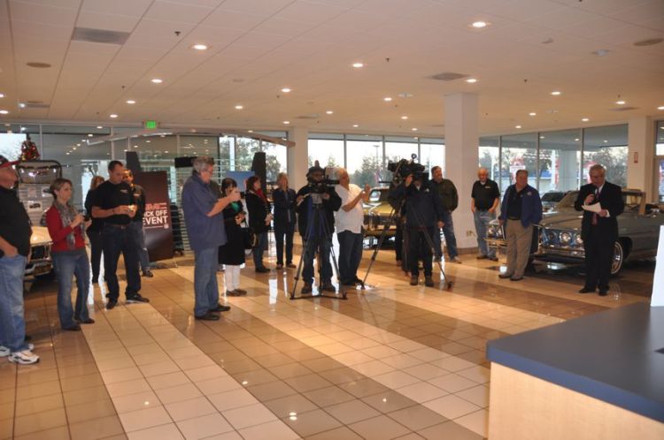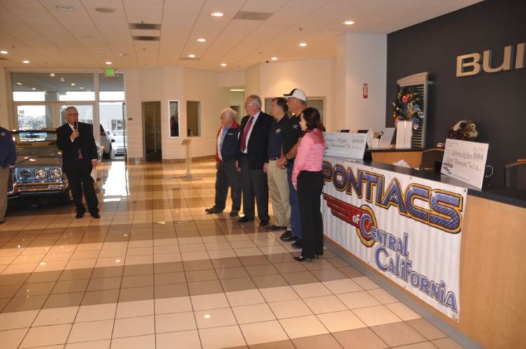 On Thursday December 11th, the club made its largest ever donation, $16,000.00! Our Title Sponsor, Larry Kitahara, owner of Kitahara Buick, GMC of Fresno, generously opened his showroom for the event. He even had it cleared of cars so we could park four classic Pontiacs inside during the ceremony. Also present were our two Co-Title Sponsors; Don Bonander representing Bonander Truck and Trailer Sales of Turlock, and Jerry Fahrney representing The Fahrney Automotive Group of Selma. POCC is extremely fortunate to have three local dealers that are so supportive of us, and their local communities.
